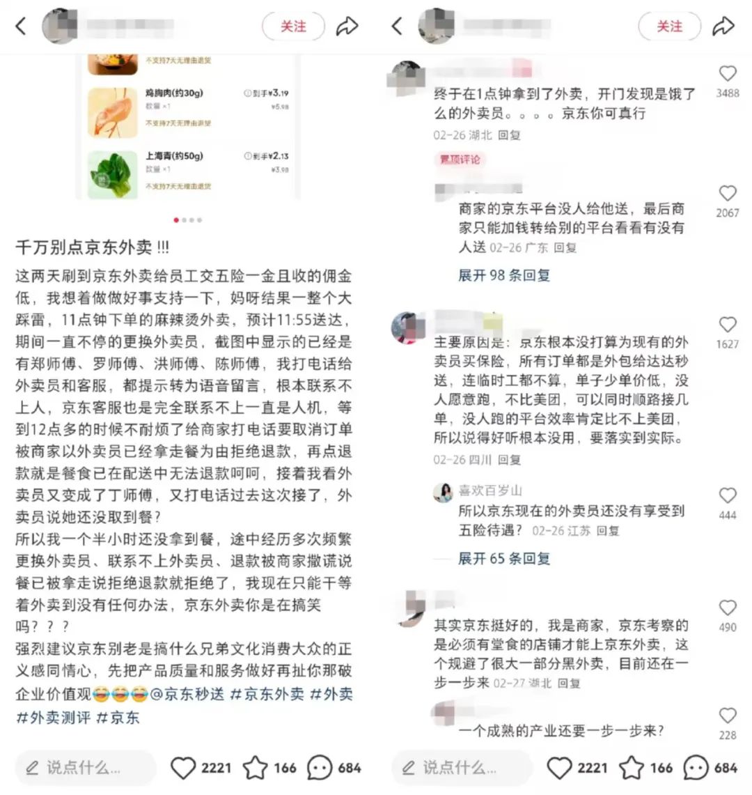 社交媒體上關於京東外賣的討論