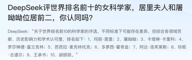 沒吳健雄就別搞排名,DeepSeek列出世界十大女性科學家,我有話説_風聞