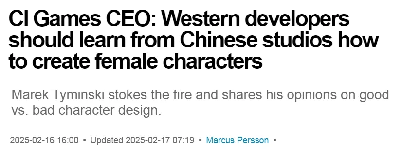 《墮落之王》(Lords of the Fallen)開發商CI Games的首席執行官Marek Tyminski也發推反對設計不受玩家喜愛的角色。有外媒甚至直接打出了《CI CEO:西方開發者應該向中國廠商學習如何設計女性角色》的標題。