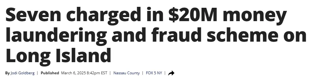 紐約華人資訊網2025年03月08日 03:32:590人蔘與0評論綜合fox5ny和CBS 3月6日報道 拿騷縣當局指控七名華男涉嫌參與一起涉案金額達2,000萬美元、涉及45個州的洗錢和共謀詐騙案件,該案共導致1,800名受害者(其中許多為老年人)蒙受損失。