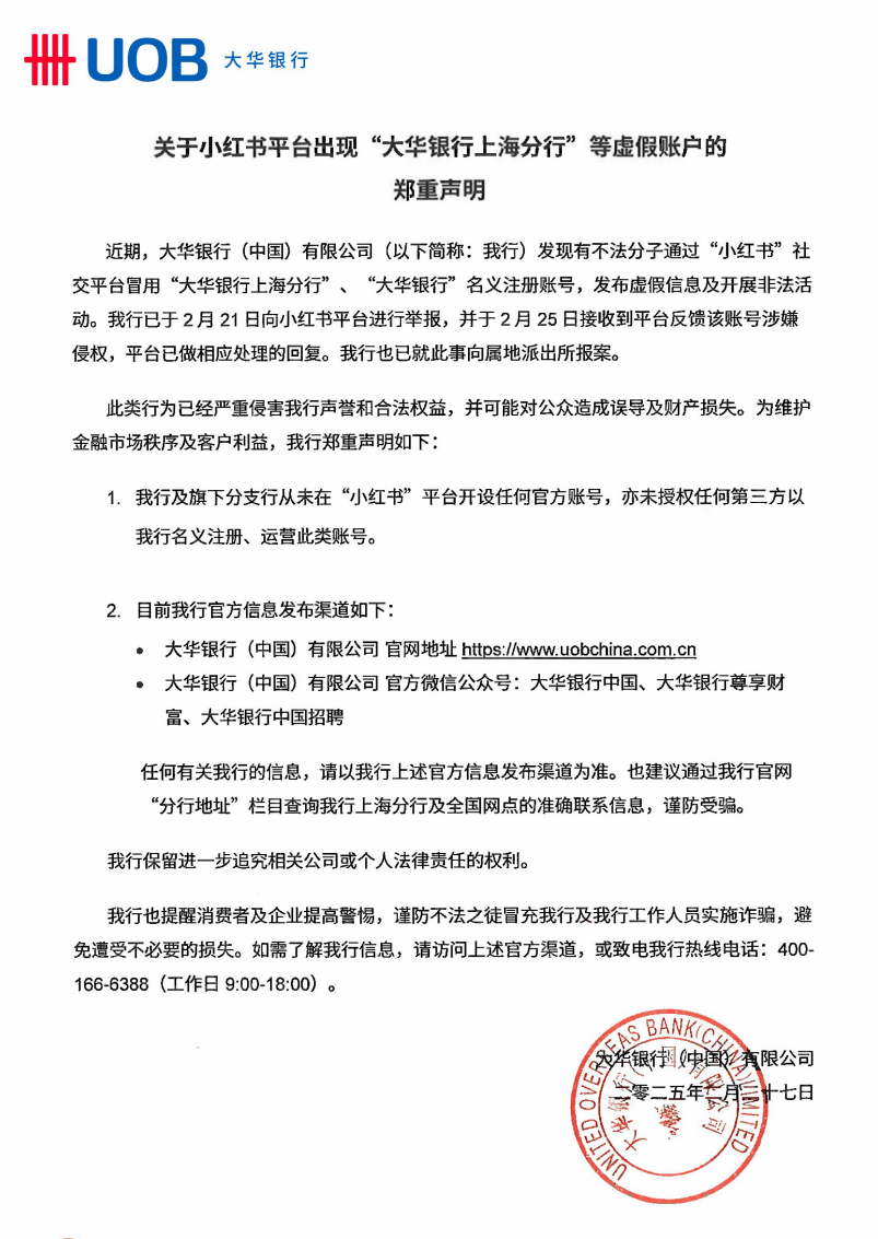近期,大華銀行(中國)的一紙聲明,將小紅書推上了輿論的風口浪尖。不法分子竟然在小紅書上冒充“大華銀行上海分行”、“大華銀行”等名義註冊賬號,發佈虛假信息,開展非法金融活動。這一事件不僅損害了大華銀行的聲譽,更讓眾多用户對小紅書的審核機制產生了嚴重質疑。