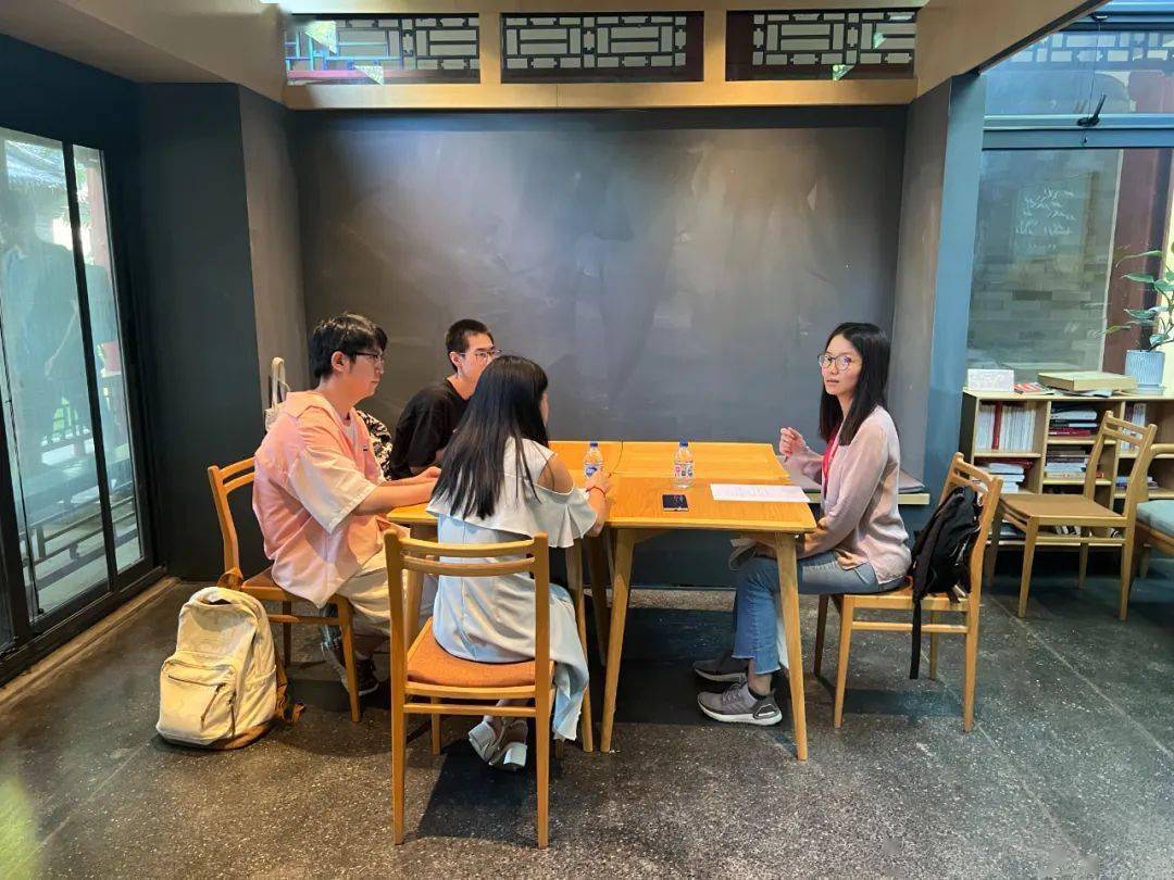 王虹與採訪人博士後陶菲、研究生王晨鑑和鄭旭在一起