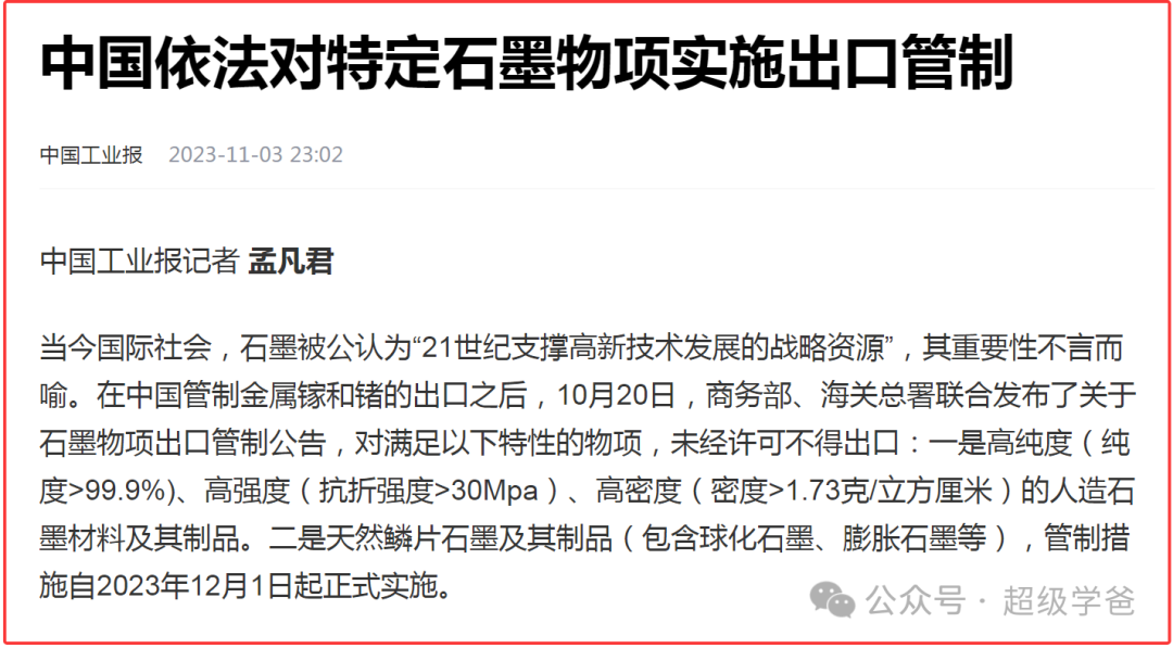 隨着第四次科技革命的展開,石墨的價值越來越大。首先它是鋰電池負極的主要材料,也是光伏和半導體制造的關鍵材料。這一卡不要緊,美帝是相當難受。