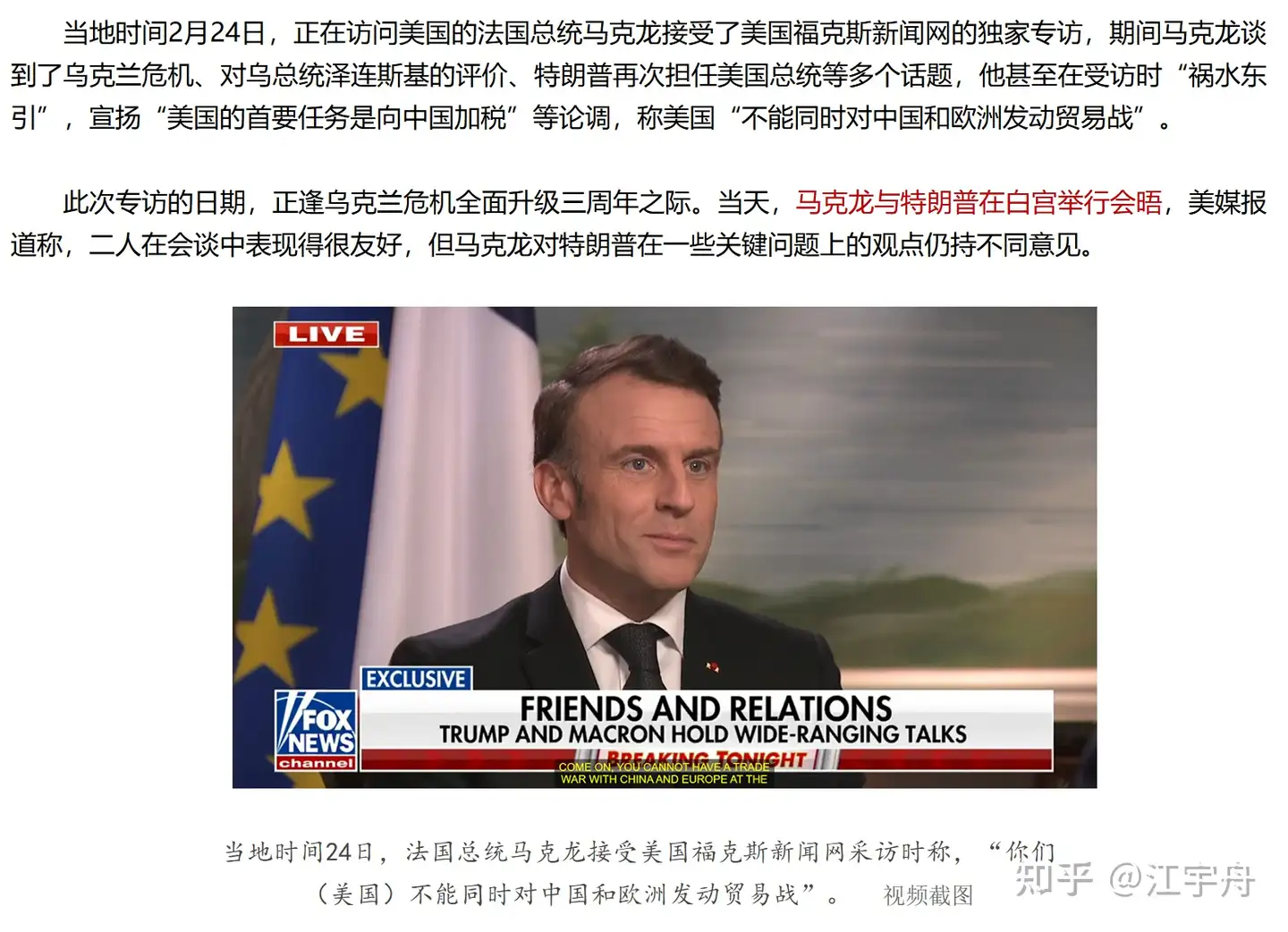 18^馬克龍使壞:美國首要任務是向中國加税,不能同時對歐洲和中國發動貿易戰 https://www.guancha.cn/internation/2025_02_25_766237_s.shtml