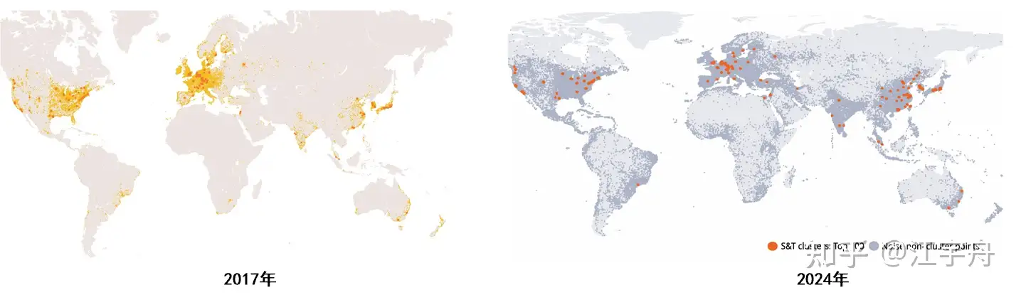 三則是我們不僅大,而且越來越強、越來越精,在技術領域,已經出現了工業革命以來前所未有的“科創東移”現象。根據聯合國下屬世界知識產權組織(WIPO)的全球百大科技集羣排行榜,進入榜單的歐洲(不含俄羅斯)科技集羣由2017年榜單中的35個減少到2024年榜單中的27個,美國由同期的30個減少到20個,中國內地由4個增長到26個(含港台共計28個)。在前20大集羣中,2017年,美歐中分別有7個、6個和3個;2024年則變為6個、1個和8個,中國歷史性地超過了美歐數量的總和。