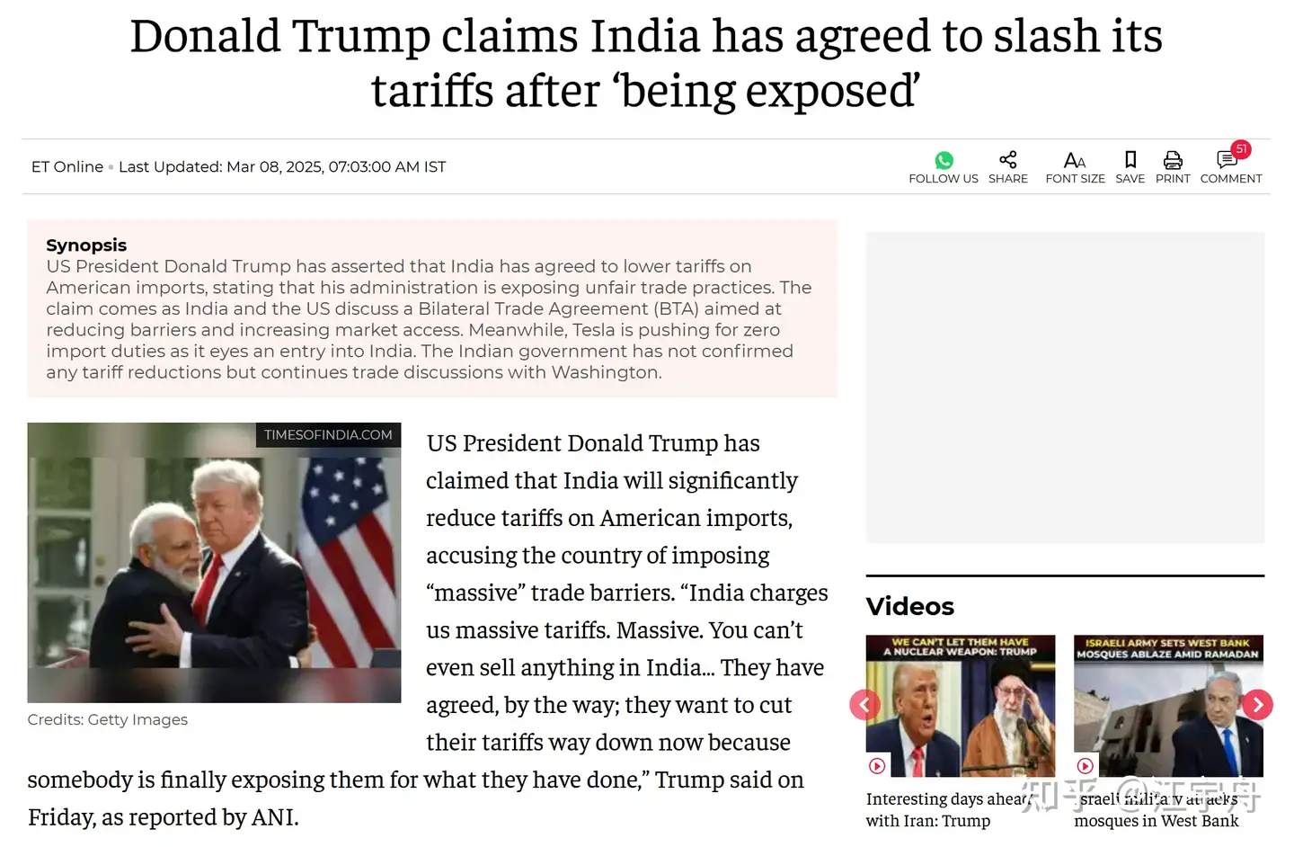 最新消息就是,他又開始替印度宣佈説願意大幅減少對美關税[19]。