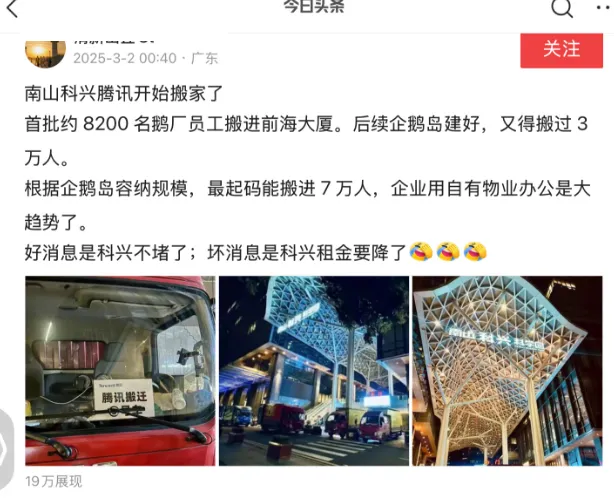 我再給大家補充一點。就在上週日,有消息稱騰訊第一批8000+員工已經從科興搬到前海。可以預期的是,隨着騰訊前海企鵝島總部基地的落成,隨着騰訊大幾萬員工從科興逐步轉移到前海,前海的價值只會加速兑現。