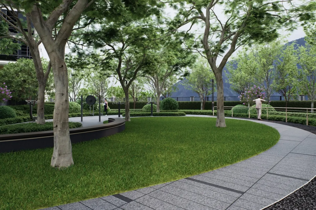 構建了山林飛鳥花園、台地花園、堂前休閒花園、山野風情花園、康體花園、山野精靈花園6大森系活力花園,讓社區內景觀與外部自然生態相融共生。