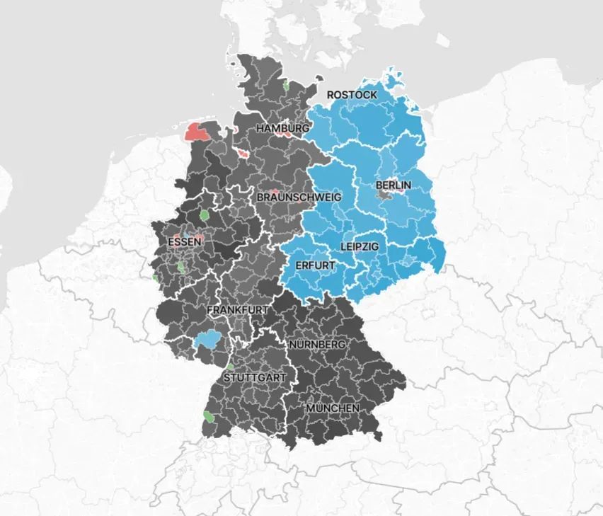 西德被基民盟和基社盟覆蓋,而東德被德國選擇黨佔據