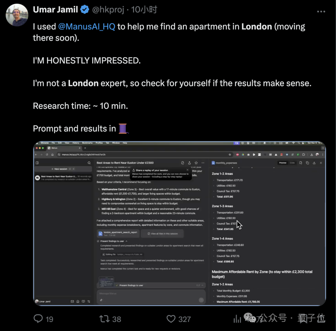也有人把它當做Deep Research類工具,尋找租房信息只花了不到10分鐘時間。