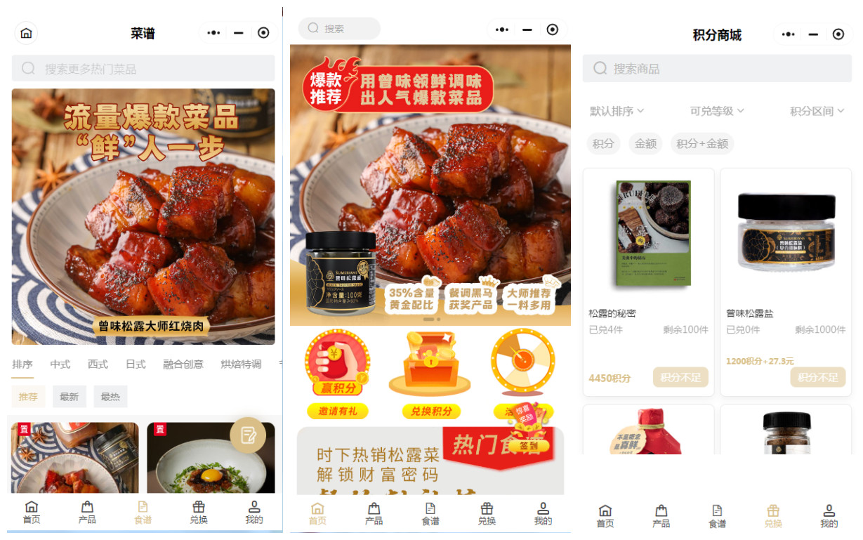 為了更好地營銷及與用户互動,曾味上線了品牌小程序,研創並推廣海量松露食譜,為消費者提供了豐富的烹飪靈感,巧妙地實現了目標消費者的精準觸達。無論是喜歡中式烹飪的家庭主婦,還是熱衷於西式烘焙的年輕羣體,都能在這些食譜中找到適合自己的菜品做法,從而激發他們購買曾味松露調味品的慾望。