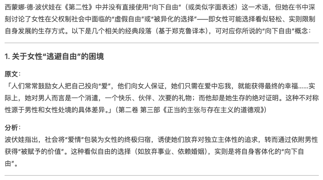 Deepseek關於《第二性》中