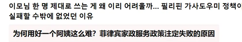 有韓國民眾分析,引進菲傭是一項“註定失敗的計劃”。
