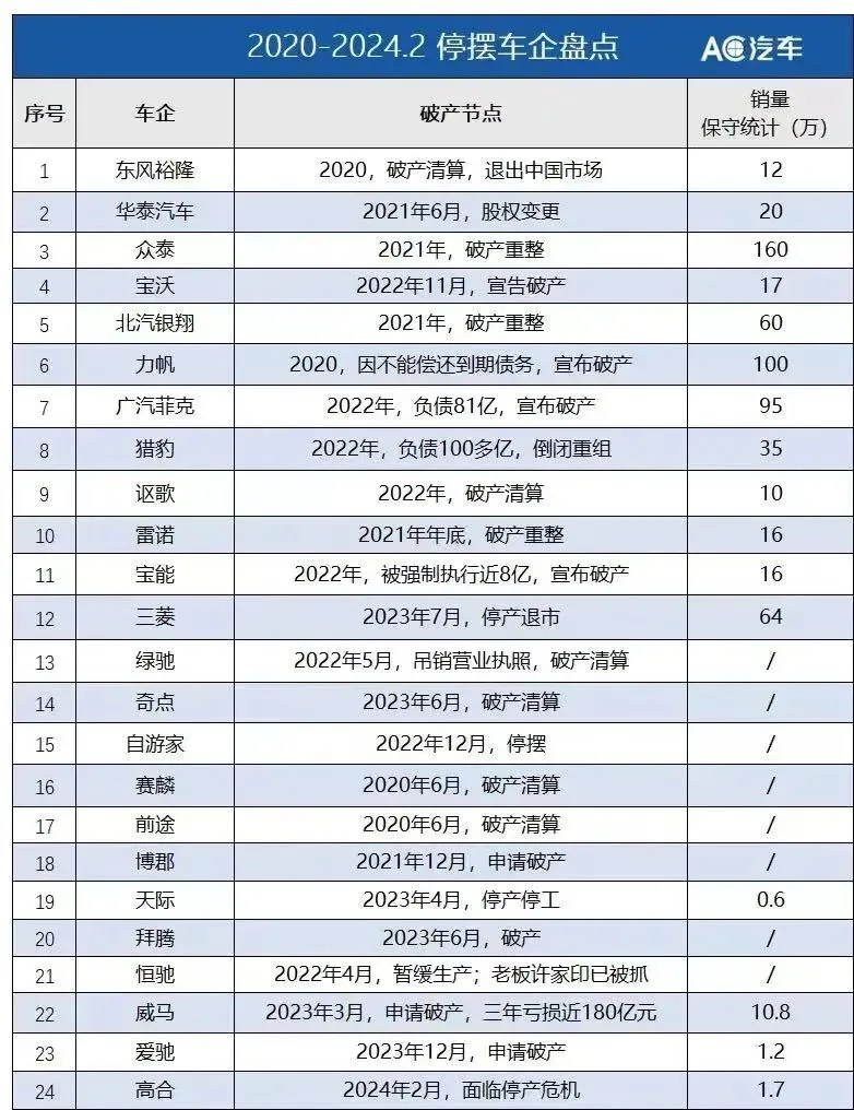 可以這麼説,一窩蜂的“風口產能”,毫無競爭力可言,因此,在低質的行業內卷之下,車企的倒閉潮水也隨之而來。