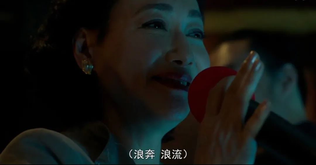 KTV裏,“棠夫人”一把推倒別人,拿起麥克風旁若無人地用粵語唱起了這首《上海灘》。