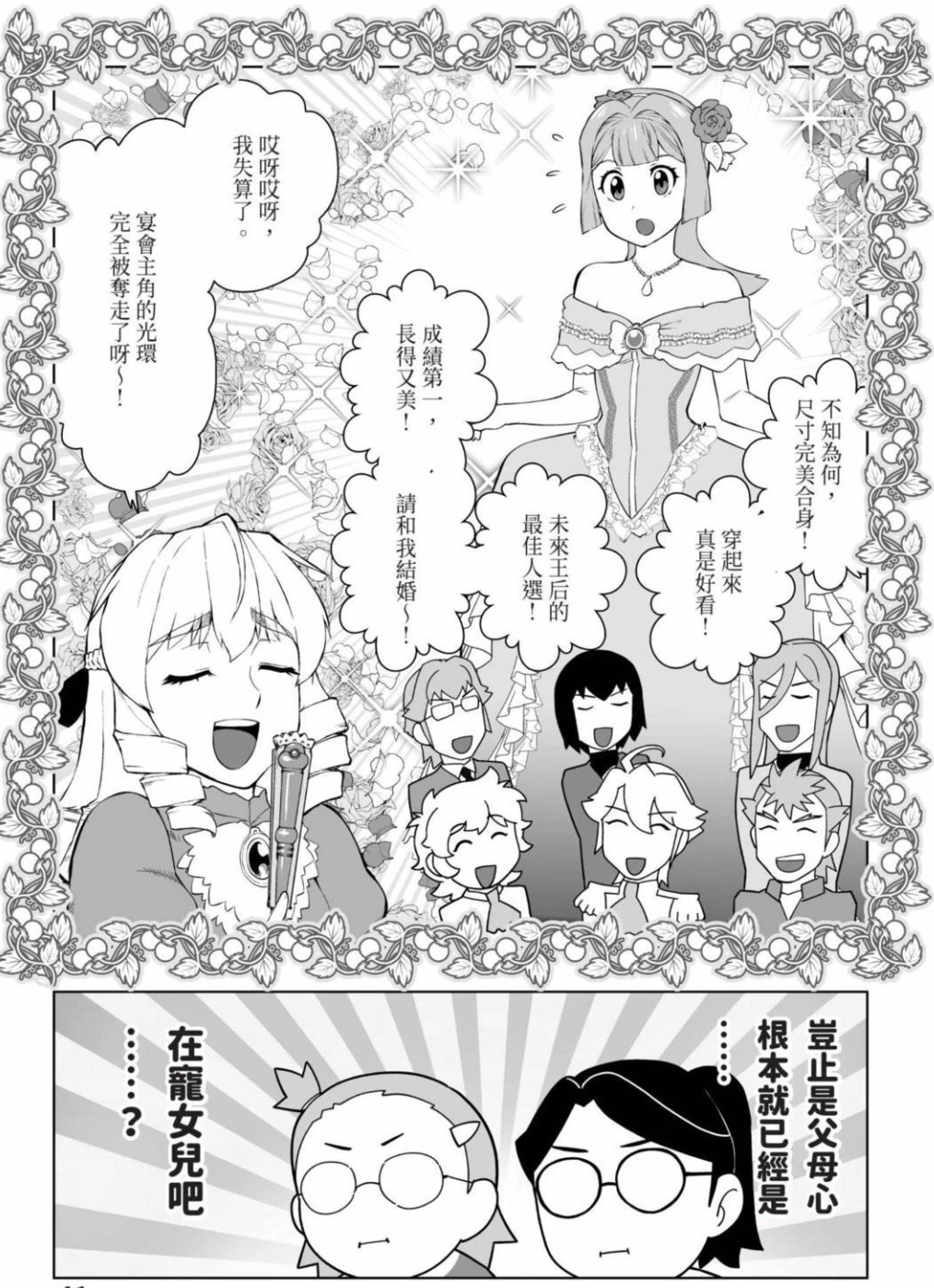 就比如,為了合理化大叔靈魂如何做出符合上流千金的禮儀舉止,漫畫裏打了一個設定上的補丁——“優雅轉換”。只要大叔做出合乎身份禮數的行為,接受過貴族禮儀薰陶的這具身體就會自然地做出淑女禮數。