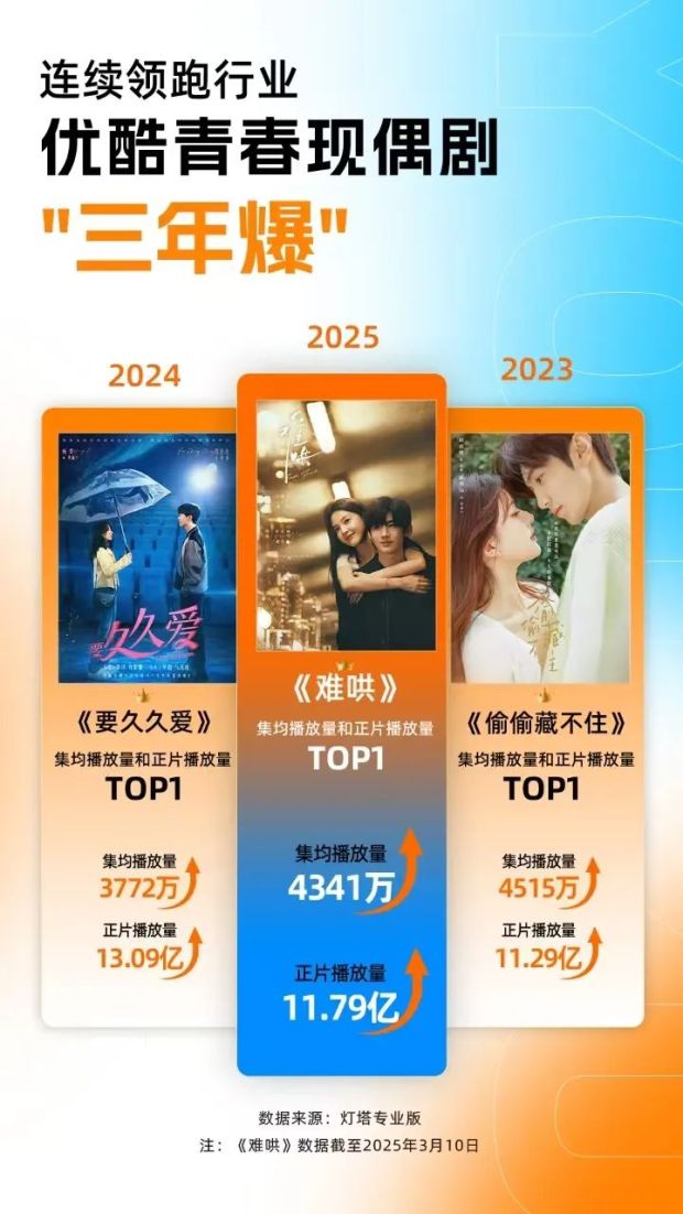 直至收官,《難哄》掀起的互聯網討論熱潮還在繼續,並連續打破海內外多個平台紀錄。國內方面,以10376的熱度打破了優酷的站內最高熱度紀錄、拿下2025年優酷青春現偶劇集均播放量和正片播放量TOP1、以突破27億的話題瀏覽量成為了小紅書2025年數據最高的劇集、以突破7000萬點贊成為同期斷層領先的劇集官抖。
