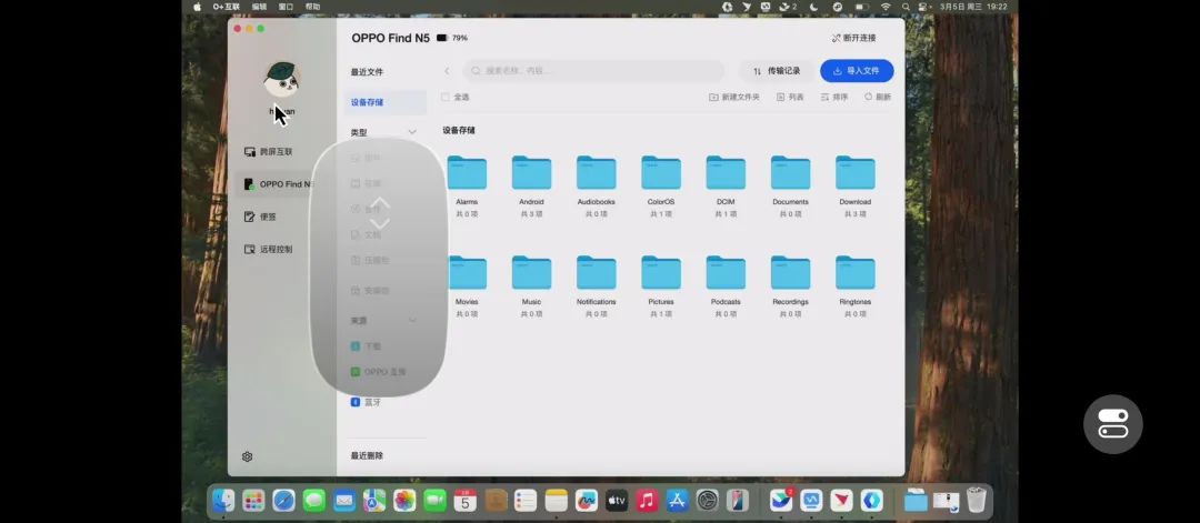 但這其實還不是重點,通過 “ O+ 互聯 ”,你甚至還能在外面用 OPPO 手機遠程控制 Mac。