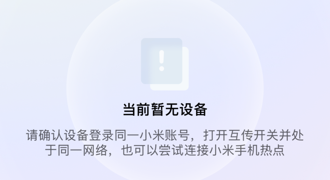 而且,小米互傳文件時得先在 APP 裏登錄小米賬號,兩台設備還得在同一局域網,或者手動讓蘋果設備連上小米手機熱點,要不然你在 APP 裏檢測不到安卓手機。