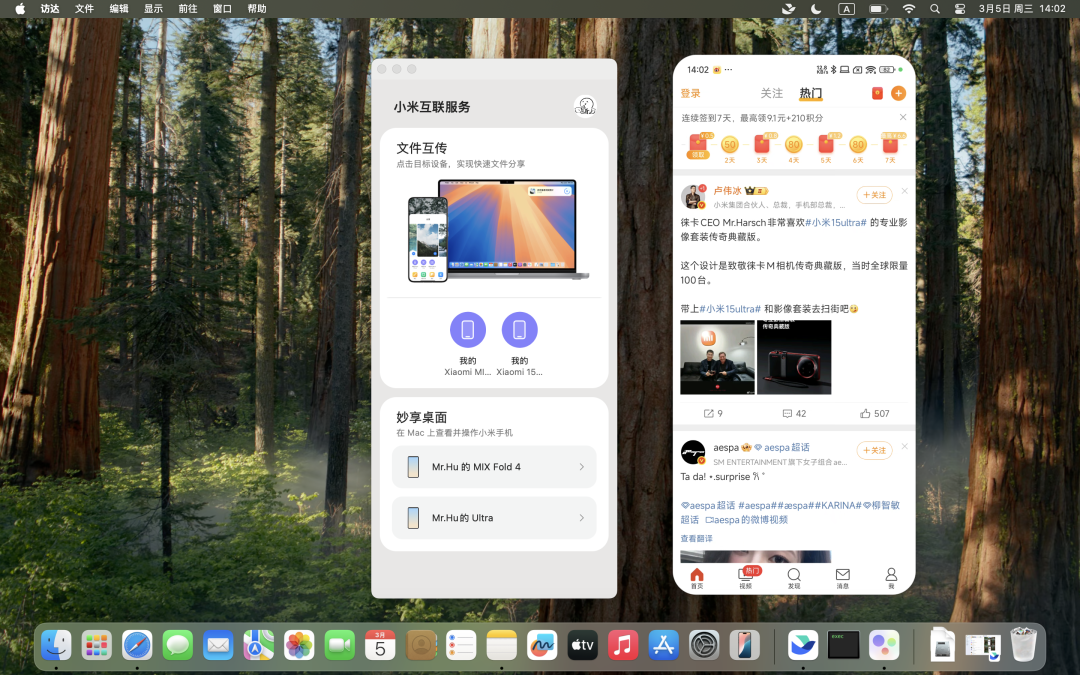 如果説 OPPO 的思路是讓手機來控制 Mac,那小米的思路則剛好反過來,它支持把小米手機鏡像投屏到 Mac,然後用電腦來控制手機,從而在 Mac 端也能夠用上安卓 APP。