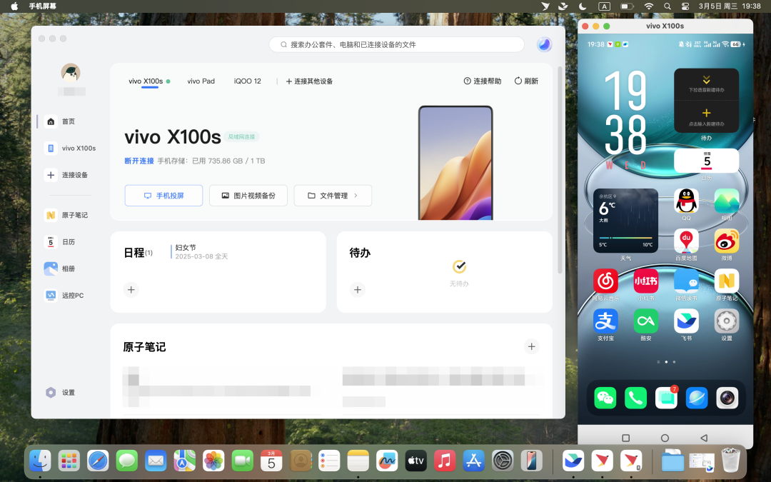 在 Mac 上下載好 “ vivo 辦公套件 ” 後,你會發現 OPPO 所支持的拖拽互傳文件、便籤與待辦事項即時同步、遠程用手機操控 Mac;還有小米支持的手機投屏到電腦用 Mac 控制,這些功能可以説一個都不落。
