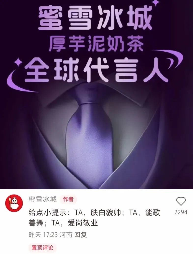 去年底,官號吊足胃口即將官宣新品代言人,一堆粉絲信以為真,評論區內猛推自家“哥哥姐姐”,結果最後公佈了換了件新衣服的紫皮雪王……