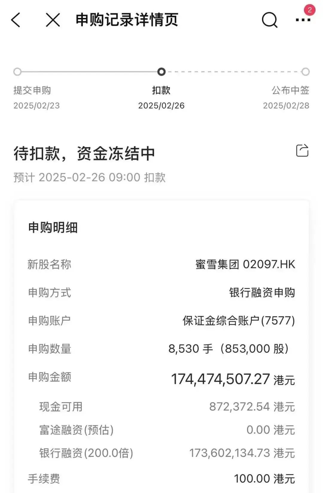 短短幾天之內,蜜雪的融資認購倍數達到了驚人的5324.29倍,認購金額高達**1.84萬億港元,**超越了此前1.2萬億的快手,創造了港股市場新股認購的新紀錄。
