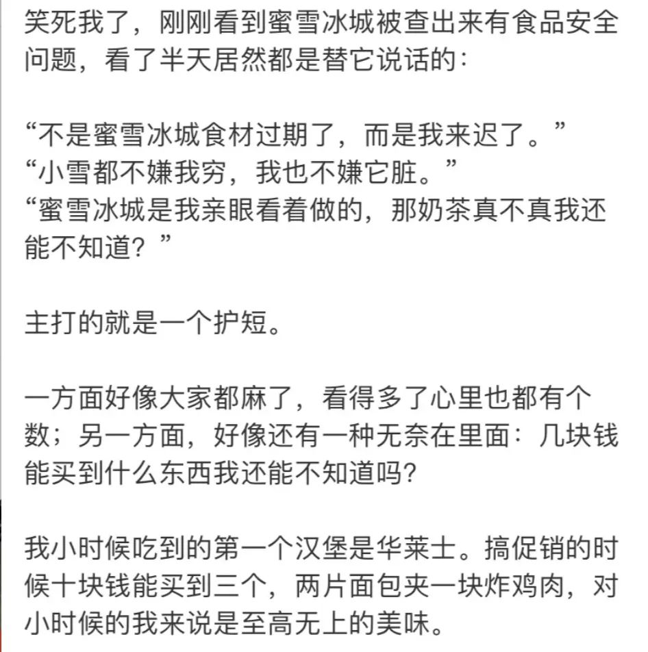 用供應鏈賺加盟商的錢,但它也保證了加盟商能賺到錢,當年即使個別門店爆出過衞生問題,許多消費者竟主動跳出來説“雪王不嫌咱窮,咱也別嫌它”。