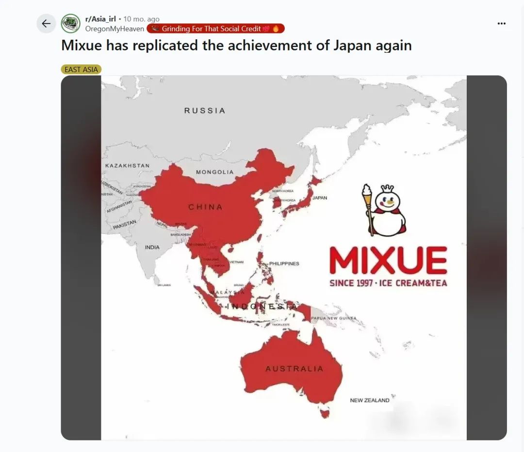 當年日本侵略者計劃在亞洲乃至大洋洲佔領大片版圖,因戰敗未能得逞,但同款版圖如今卻被蜜雪冰城實現了。