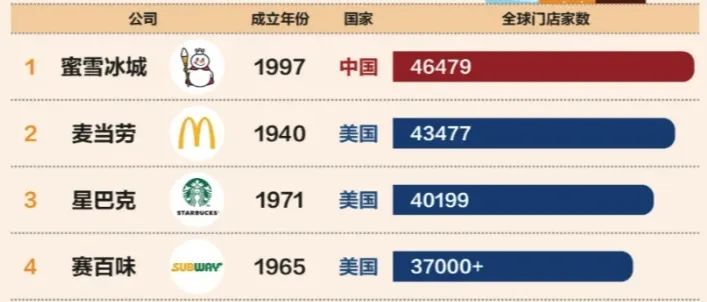 全球擴張上,雪王更是一騎絕塵,從門店數量來看,蜜雪冰城在現制飲品企業中已經位列全球第一。