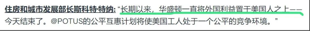 “長期以來,華盛頓一直將外國利益置幹美國人之上——今天結束了。”