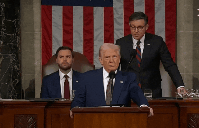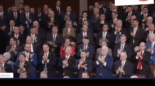 “據美國社媒統計發佈,特朗普國會演講每講30秒,共和黨議員就站起來鼓掌15秒”。