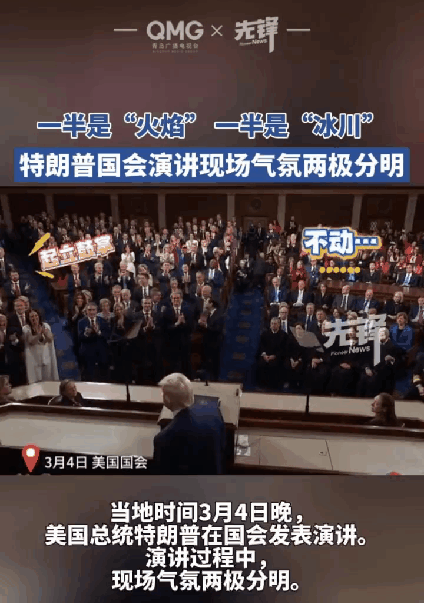 但在3月4日的國會演講裏,特朗普做的比誰都誇張。