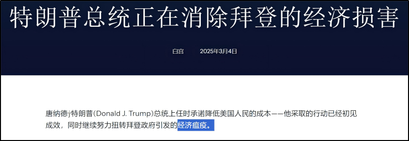 氣氛到這了,白宮也乾脆把特朗普大幅畫像放在網站上了,並宣稱這才是真正的美國黃金時代。