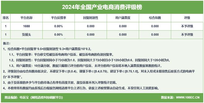 在2024年全國產業電商評級榜中:1688、貨捕頭獲“不予評級”。