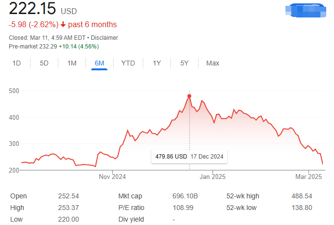 至於歐美國家那些更為普遍的,舉着牌子在門店外抗議的,更是數不勝數。套用一個梗來形容現狀就是,跟特朗普一起發癲,真連累了產品又能怪得了誰呢?就連特斯拉的股票最近也是一再暴跌,在上一個交易日中下跌了15%。特朗普勝選後,特斯拉股價一度衝到了479美元左右,現在又跌回了大選前水平。很難説現在美國是不是有勢力在狙擊特斯拉的股票,以此打擊“川萬馬”集團。