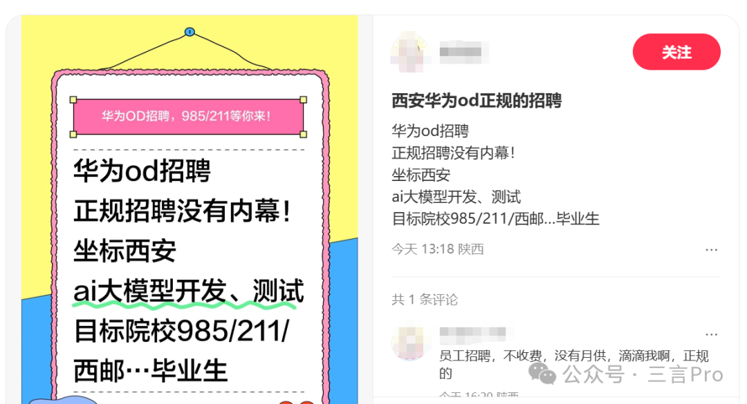 而就在今天招聘舞弊被曝出後,有人趁着熱度發佈了華為OD招聘,並強調“正規招聘沒有內幕,不收費、沒有月供”。