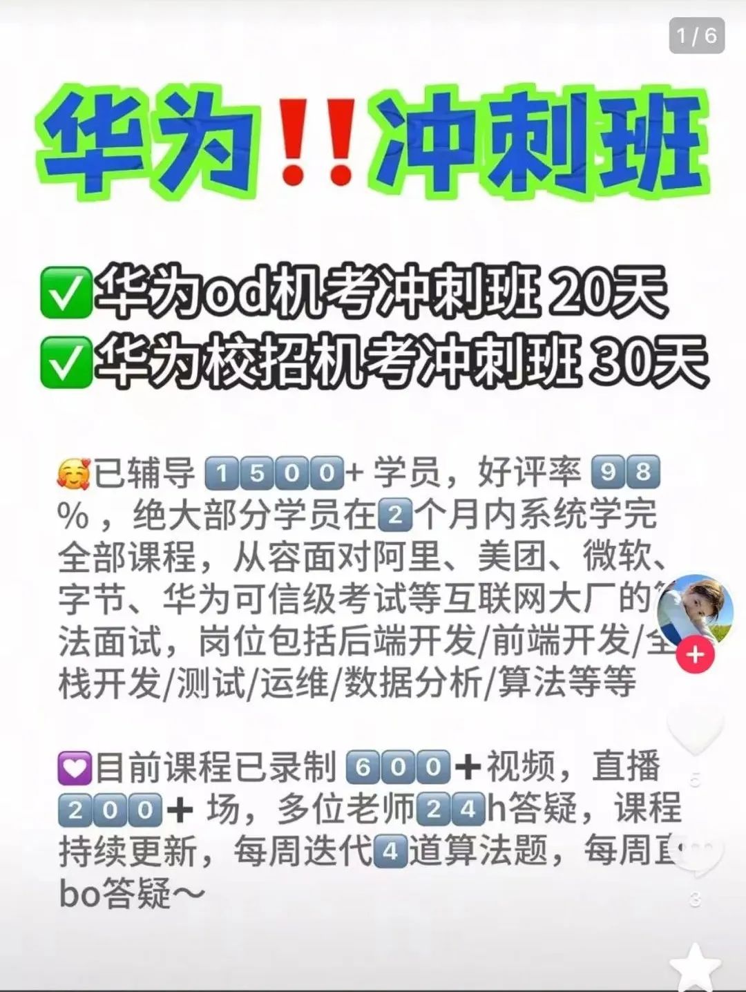 三言發現,在短視頻平台也有華為OD(外包)機考的培訓班,宣稱從機考到面試到拿offer一條龍。