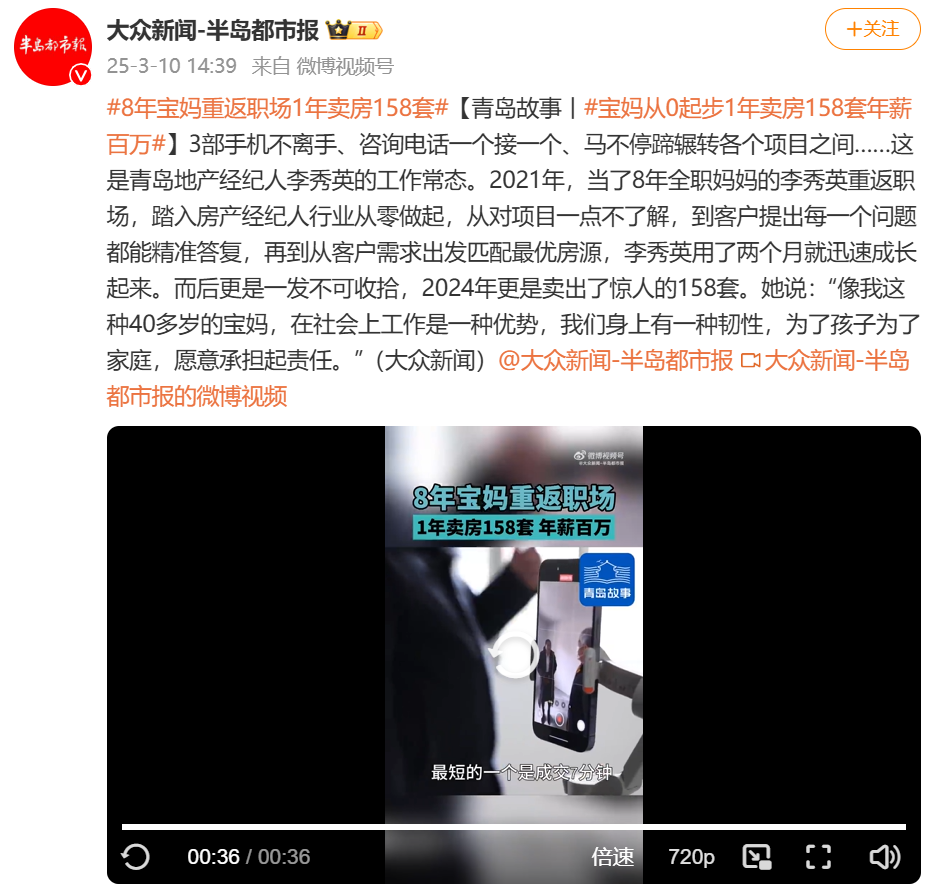 一回到職場,這位寶媽就跟開了掛似的,成為了青島即墨地產圈裏赫赫有名的人物。