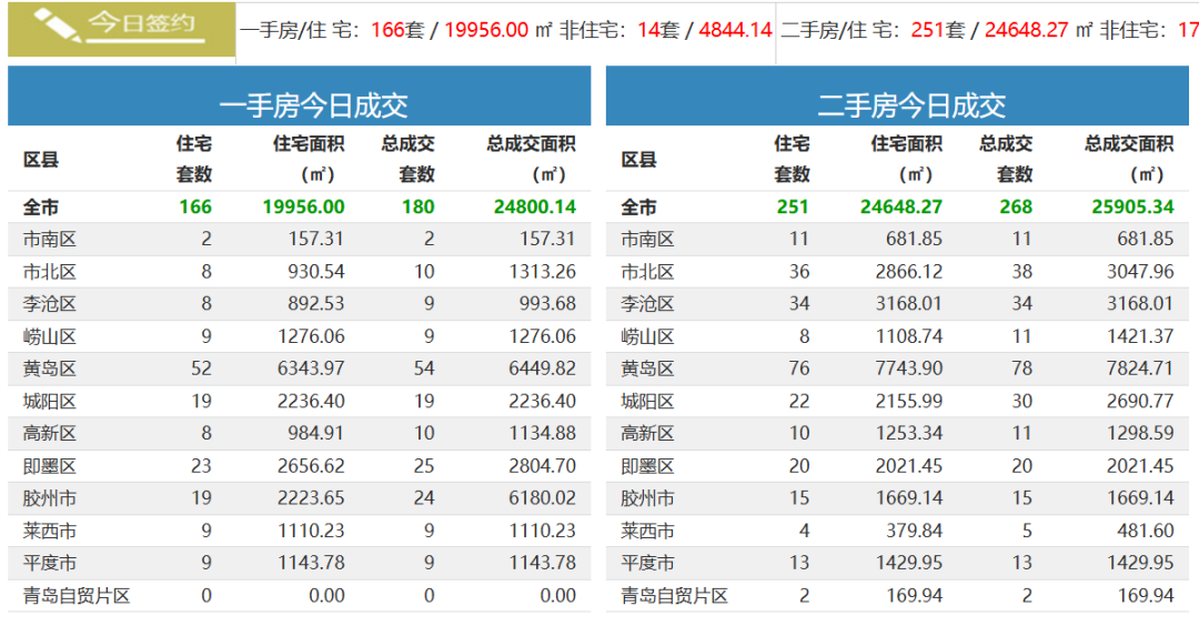 有一個叫“青島網上房地產”的網站,它會顯示當天青島房產交易的信息。
