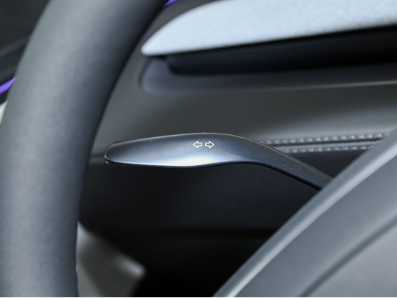 車內,**新款Model Y取消了“反人類”的方向盤轉向燈,改回了傳統的轉向燈撥杆。**前者看起來更簡潔,但實際使用體驗並不理想,且駕駛員在緊急情況下容易誤操作;新車的這一改動,是特斯拉難得的“服軟”。