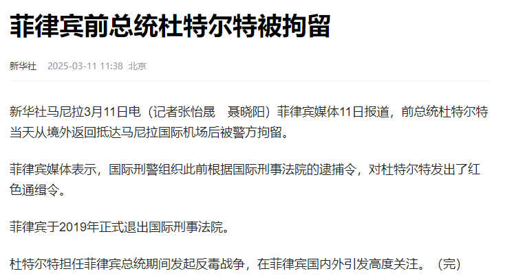 馬科斯抓捕杜特爾特當然不是因為這件事了,這背後當然有政治動機了——菲律賓親西方派要對反西方派動手了。