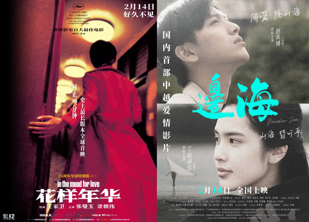 今年情人節當天有兩部愛情片上映,分別是《花樣年華》和《邊海》。這兩部愛情片票房僅佔當天大盤2.86%,與2022年和2023年情人節當天愛情片票房佔比(47.11%、25.96%)相比斷崖下跌。且上映愛情片數量只有兩部,和2023年、2024年相比也有所減少。