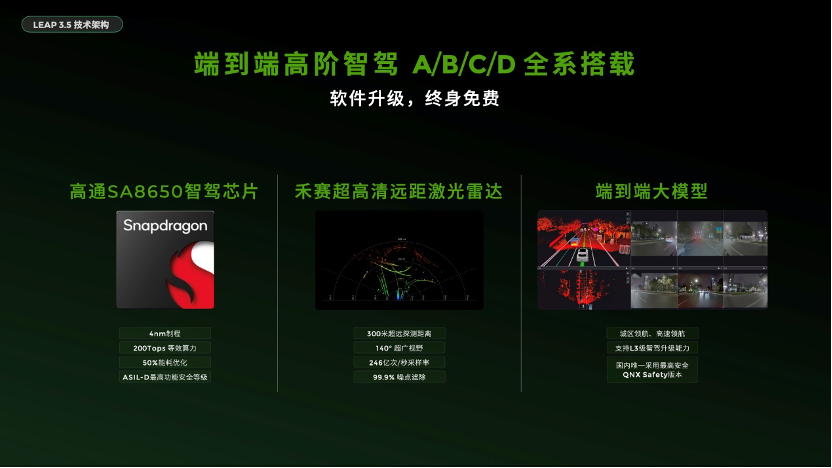 高通8650芯片是零跑首發,4nm製程,具備200T稀疏算力,功耗較同級芯片低一半。