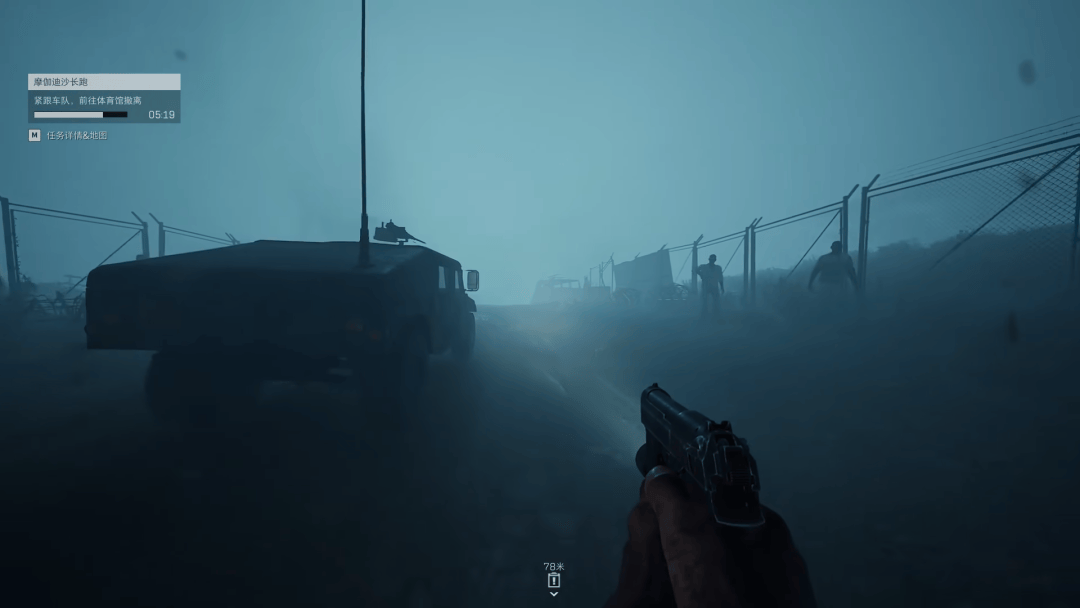 聲音設計同樣服務於沉浸感。團隊錄製了真實的槍械射擊、車輛碰撞等音效,當玩家在狹窄巷道遭遇伏擊時,子彈擦過耳畔的那種音效會被精準傳遞出來。在“摩加迪沙長跑”的關卡時,他們用聲音效果來調動玩家情緒,特種兵跑步時呼吸聲會從正常到喘粗氣再到急促喘息,同時背景音逐漸減少,到霧中就只剩沉重的呼吸和腳步聲,這種處理很像電影裏那種“突然安靜下來只聽見心跳”的手法。