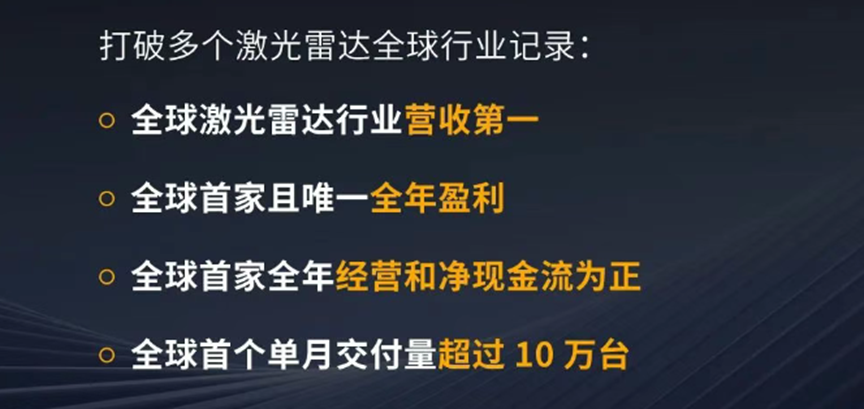 客户池穩定擴大,一個里程碑時刻在2024年底到來。12月,禾賽單月出貨量突破10萬台,成為全球首個達成單月交付量超過10萬台的激光雷達企業。