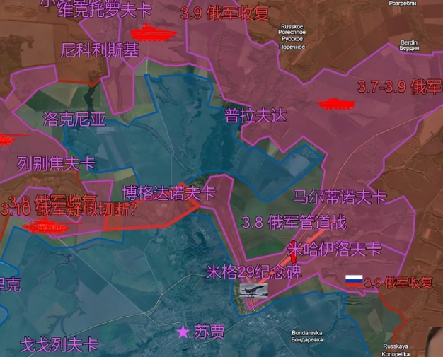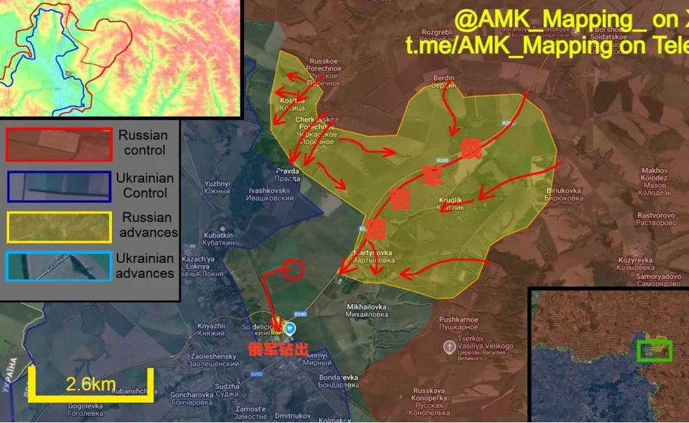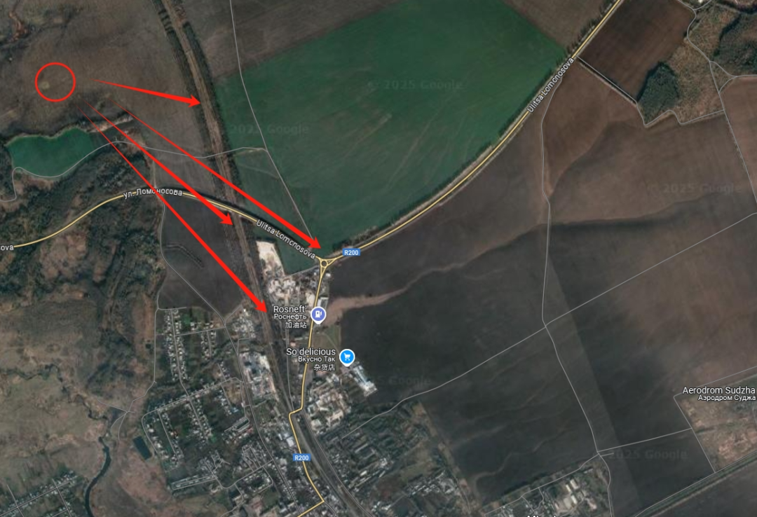 這些俄軍從管道鑽出後,首先是快速向附近鐵路的樹林中躲避,此過程遭到烏軍的無人機攻擊。隨後俄軍佔據下方的關鍵公路和橋樑,以及蘇賈市區外圍的居民點,切斷了前線烏軍的撤退路線。