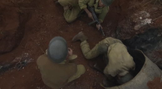 ▲《我的團長我的團》中炮灰團們鑽汽油桶通道