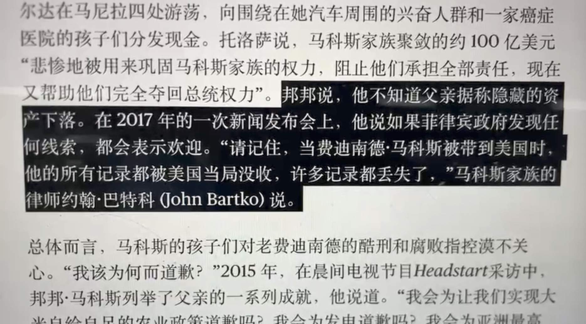 小馬科斯在上任之初也多次表態會遵從老杜任上的政策,不會發生大的改變。但小馬科斯在2022年9月份去了一趟美國之後,一改老杜時期的對東大友好路線,轉而全面倒向美國。有傳聞説小馬科斯家族有老馬當年貪污得來的300億美元資產存在美國,不聽美國的就拿不到這筆錢。本博主特意查了下,確有其事。據1986年3月1日出版的《紐約時報》報道稱,“在前總統馬科斯執政期間,有 100 億至 300 億美元被偷運出菲律賓,這些被盜財富大部分位於紐約和美國其他地方,以房地產、藝術品、珠寶、銀行和經紀賬户的形式存在。”而這些錢全部被當時的美國里根政府所扣留至今,中間小馬科斯家族一直在向美國政府追討這筆錢。因此,小馬科斯去美國訪問後是否與美國達成了什麼秘密協議,便於他的家族將來能拿回這筆財產,菲律賓外交上全面倒向美國,也就一點都不奇怪了。