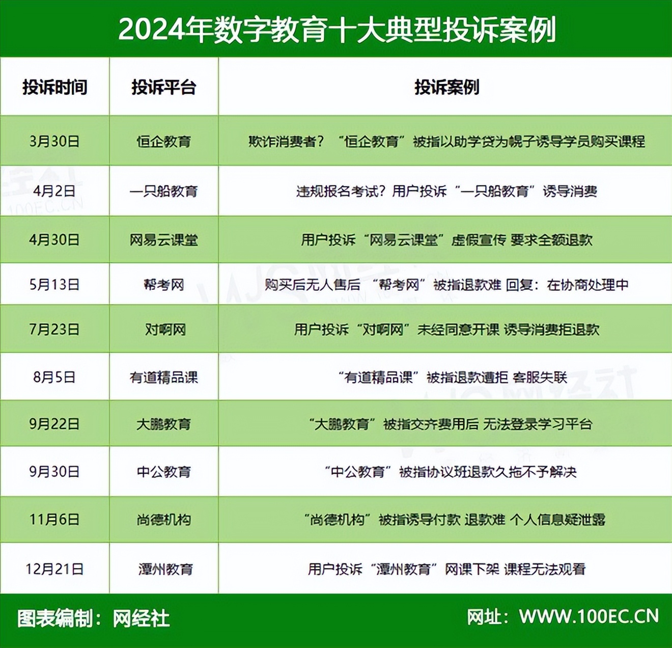 恆企教育中公教育尚德機構等入選2024年數字教育十大典型投訴案例